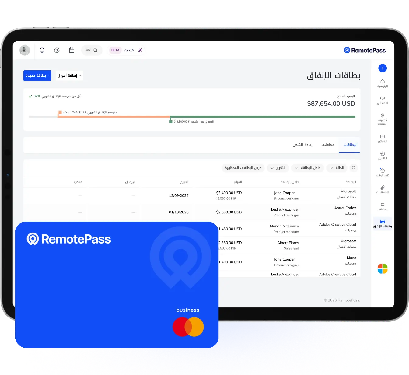 فريقك ينفق عالميًا، عبر الإنترنت أو في المتاجر