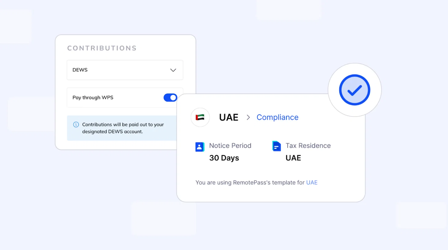 استفد من أنظمة الرواتب المزودة بتحديثات تنظيمية مدمجة، مثل ريموت باس. منصتنا ترسل تنبيهات امتثال فورية وتعدّل حسابات DEWS تلقائيًا مع أي تغييرات تنظيمية. هذا يضمن لك البقاء مواكبًا دون الحاجة إلى تحديث يدوي عند صدور قانون جديد.