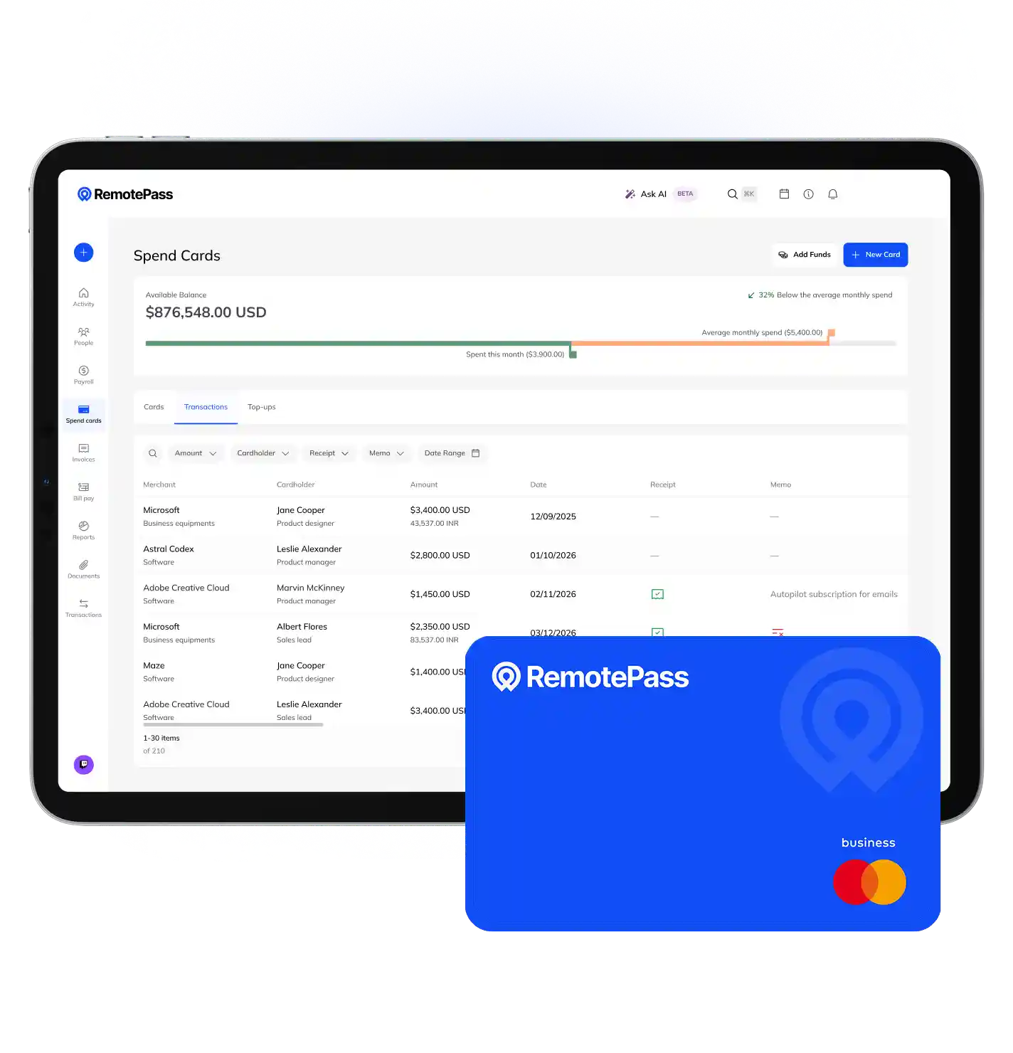 Built for distributed and remote teams. No out-of-pocket expenses or delays.